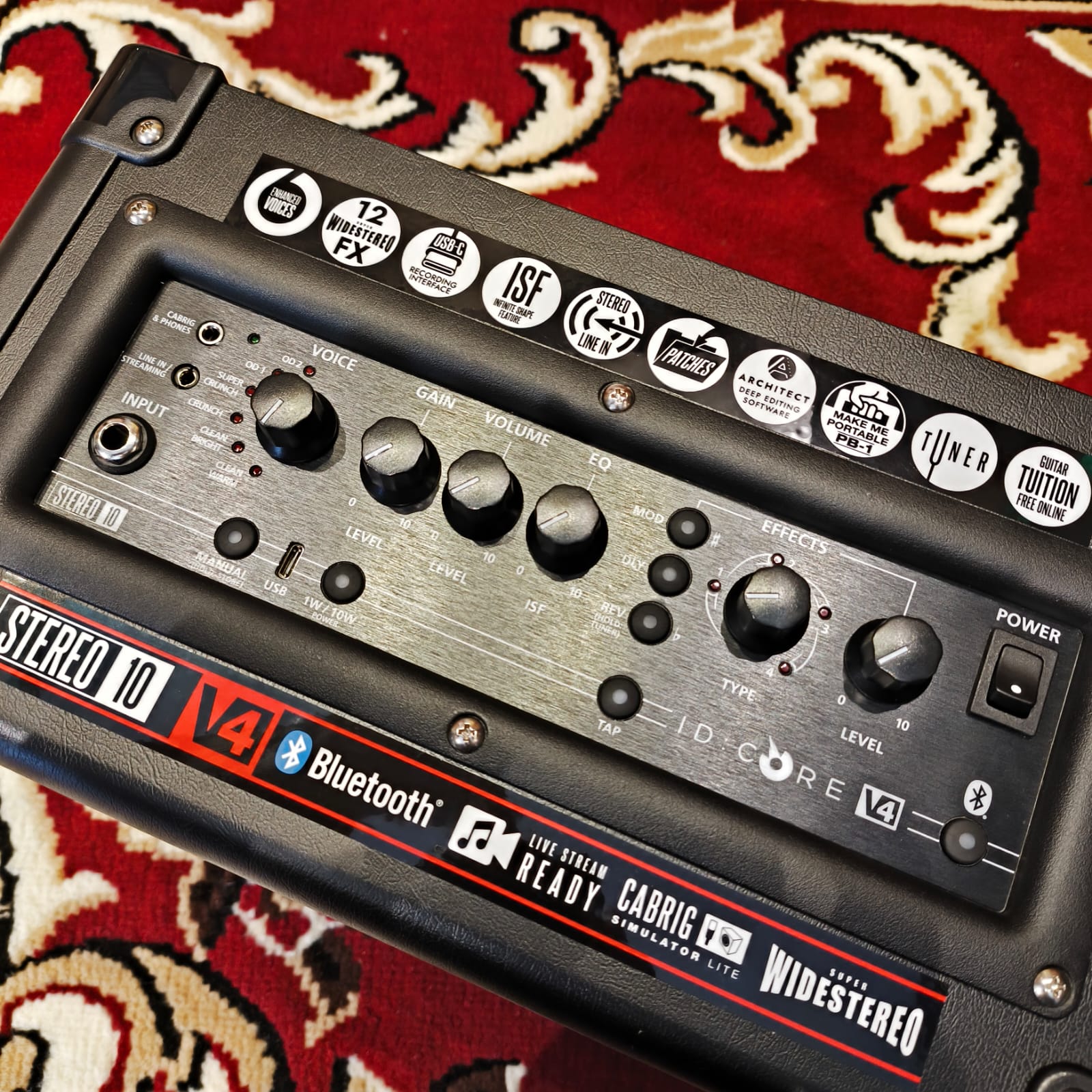 Whether you’re a beginner or a pro, the ID:CORE V4 gives you an incredible playing experience with rich tone and immersive Super Wide Stereo sound. Designed by the same R&D team behind our pro amps, it offers versatile controls, deep editing, and CabRig™ Lite simulation via Architect software. Enjoy easy USB-C recording, smartphone streaming with a TRRS cable, and Bluetooth playback on the V4 10 model.